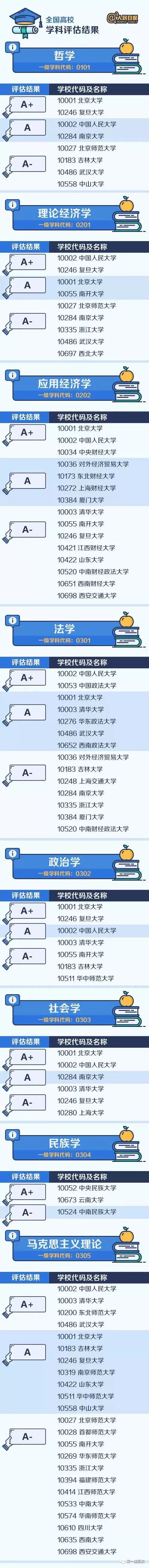 人民日报微博专门收拾汇总了 A类学科(包含A+、A、A-三档),来看看这些我国最顶尖的学科名单都散布在哪些大学?