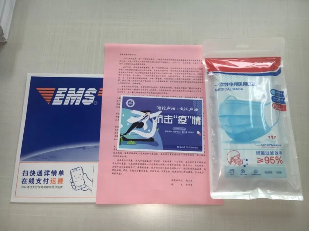 “校园寄过来的口罩还有慰问信,