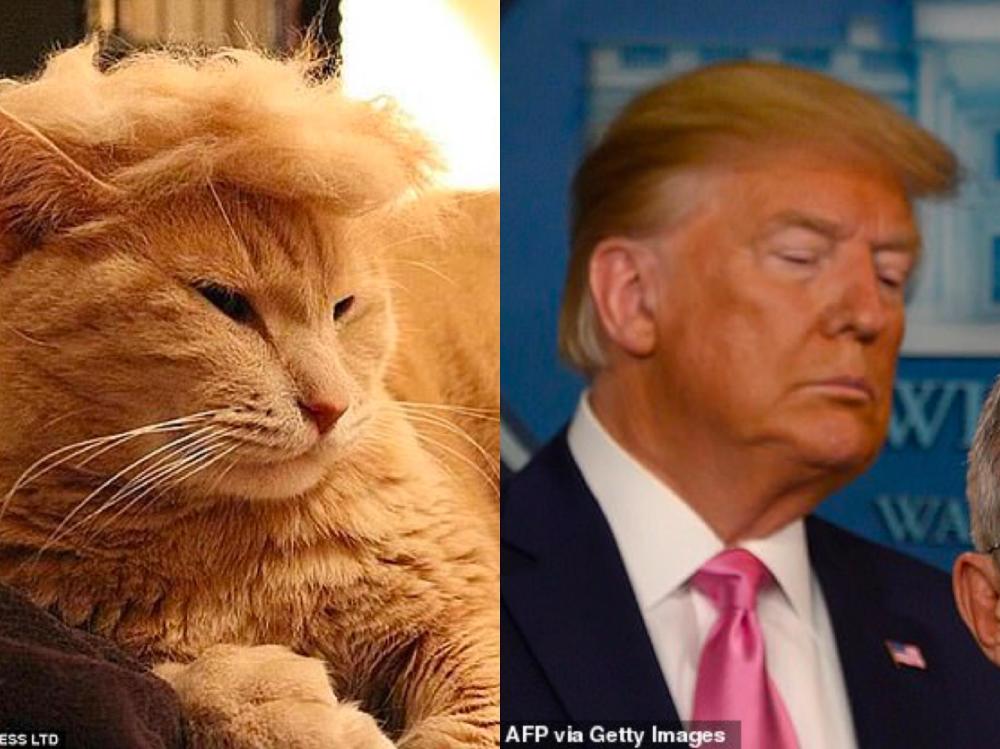 这些有才调的网友,几乎把这些毛发梳的活灵活现,在发到社会化媒体上时再配上一张特朗普的原图。相同的发型,配上猫咪们高冷的脸,着实风趣。其间一名网友装扮的愈加精心,他不只复原了发型,还配上了特朗普的服饰。白色的衬衫领,赤色的领带,复原度十分高。