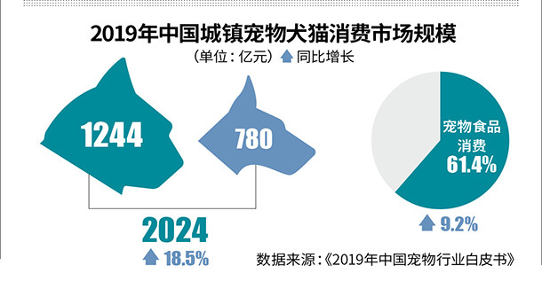 据《2019年我国宠物职业白皮书》显现,2019年我国乡镇宠物(犬猫)消费商场打破2000亿元关卡,全体规划到达2024亿元,同比增加18.5%。
