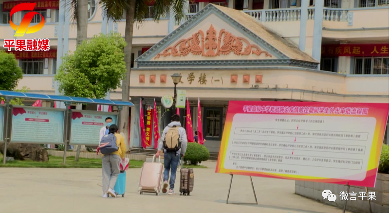 记者在平果高级中学正大门看到,该校的高三学生正在陆陆续续返校,工作人员正在提示学生进校签到环节的需求留意的几点,对学生进行体温检测、手部消毒和行旅消毒。