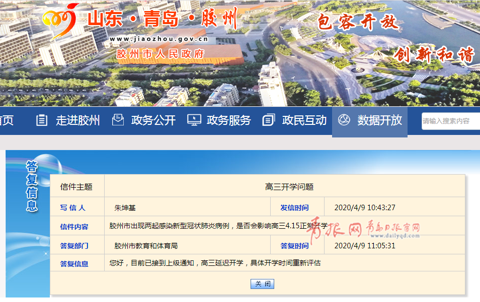 胶州市教体局进一步承认,高三延期开学,师生将持续展开互联网教育。